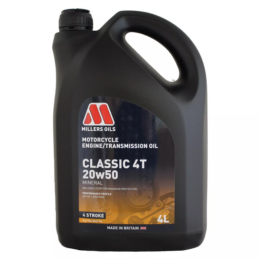 Millers Oils Classic 4T 20w-50 Mineral Motorcycle Engine Oil API SG, SF, SE